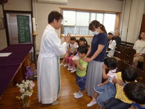 第1部は、教会で、神父様からのお話と祝福を受けました。