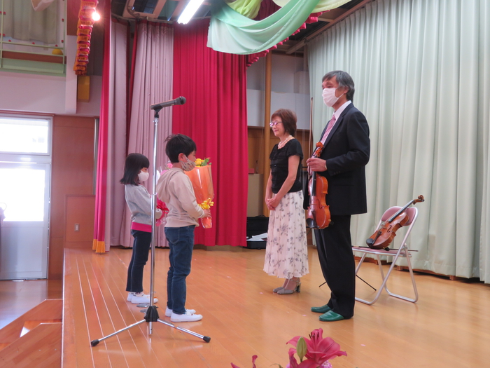 原口佐登子さんのピアノと、粂川吉見さんのヴァイオリンの生の演奏を聴き、子どもたちも貴重な体験ができました!