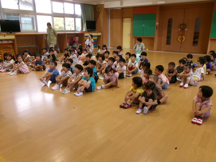 久しぶりの幼稚園、みんなはどんな気持ちかな?という園長先生の問いかけに、
