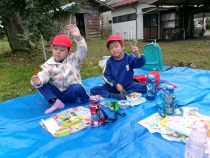 ブルーシートを広げてみんなで食べるお弁当はとってもおいしかったようです♪