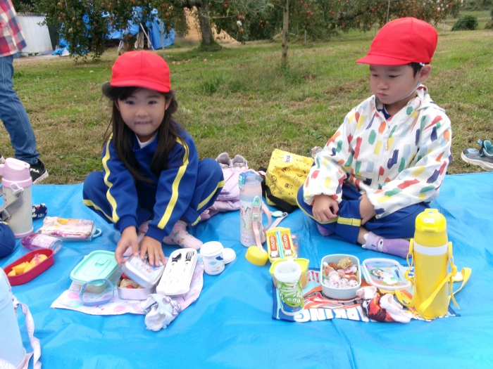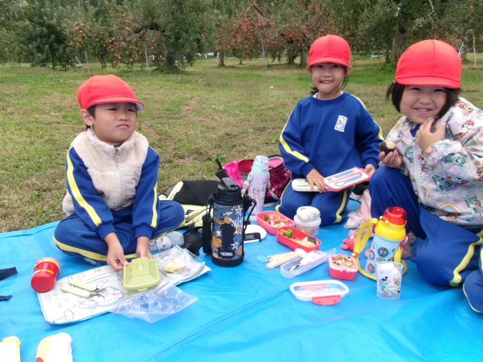 りんご狩りのあとはみんな楽しみにしていたお弁当です。