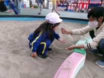 滑り台の下にはお砂場もあり、砂遊びも楽しみました。