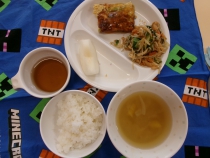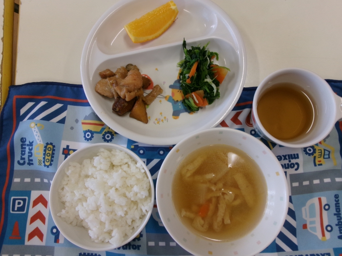 給食では、梨や柿、さつまいもなど秋の食材もたくさん出ています。
