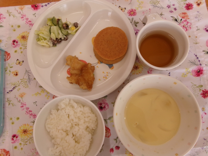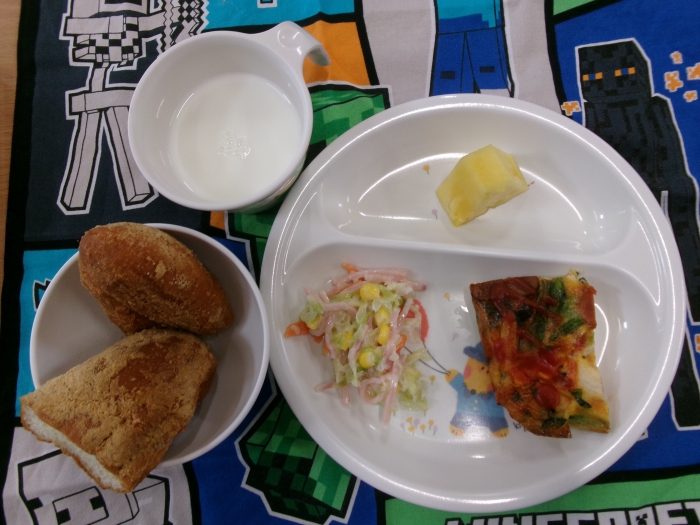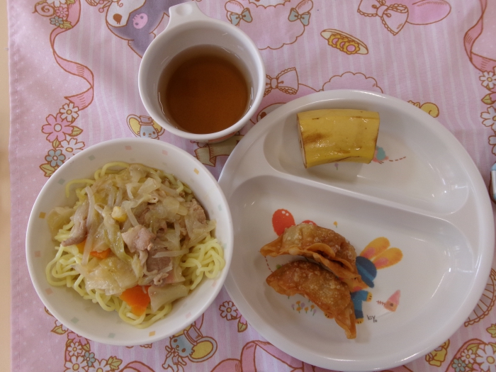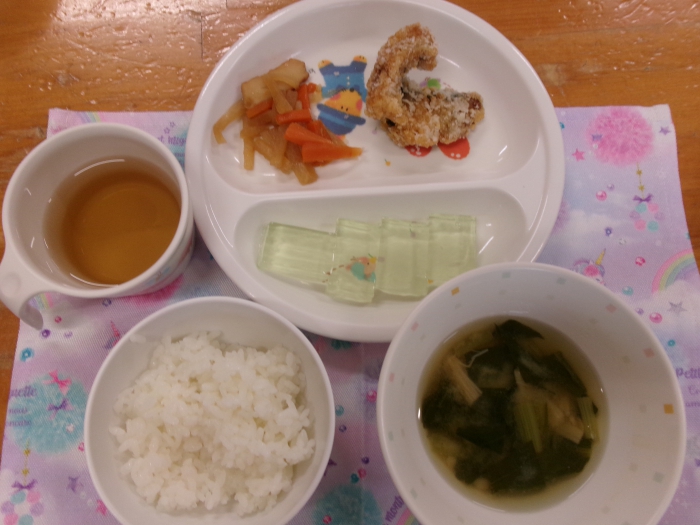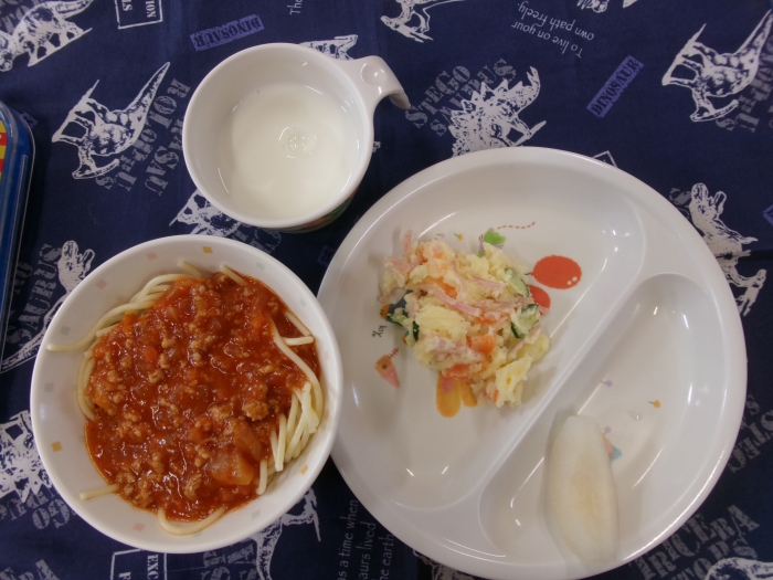 ばら組さんがりんご狩りでとってきたりんごも給食のデザートにおいしくいただきました。