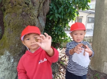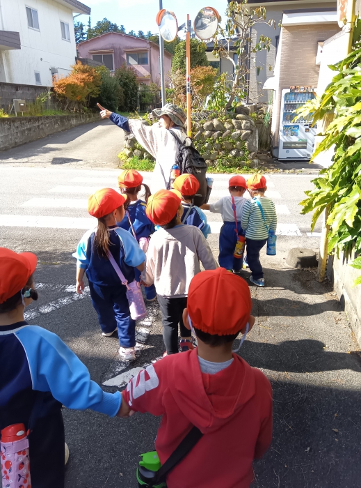 幼稚園のお外を並んで歩くのははじめてでしたが、安全にお散歩に行くためのお約束をきちんと守りながら出発しました。
