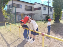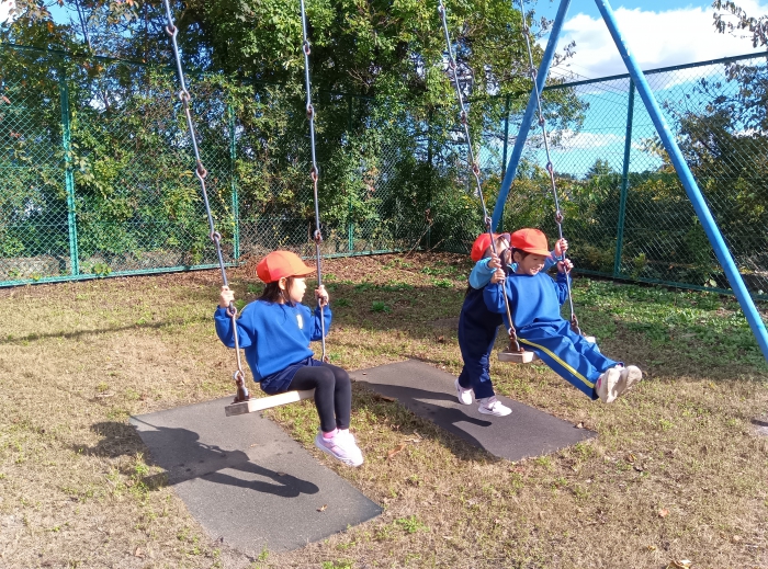 公園に到着すると、幼稚園よりも高い滑り台や、大きなブランコがあり、子どもたちは大喜び。