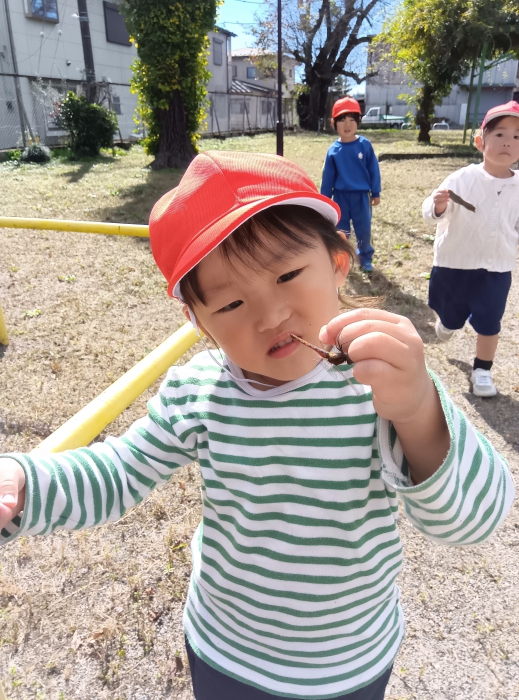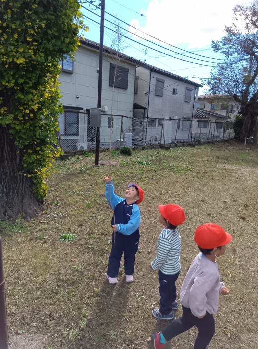 とってもいいお天気だったので、歩いて幼稚園周辺の公園や駅までお散歩に行きました。