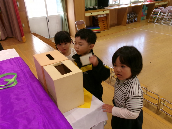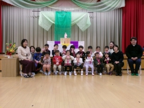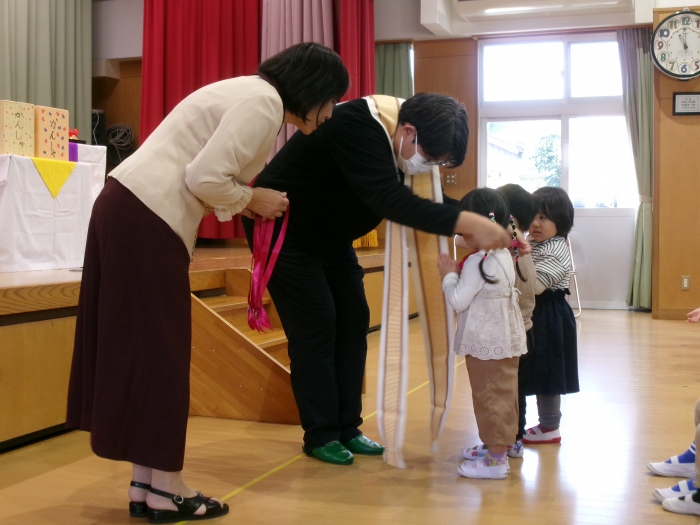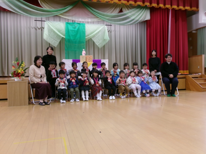 乳児組のお友達も、幼児部開始前にホールで祝福していただきました。