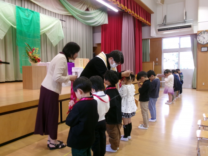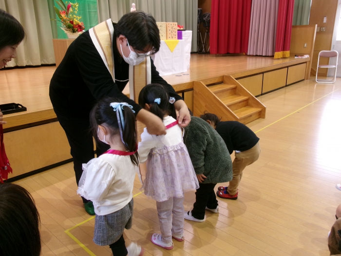 ゆり組の代表のお友達が神様にお捧げしてくださいました。