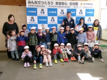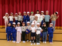 いつもみんなのことを守ってくださっている警察官の方々にご挨拶をし、パトカーも間近で見せてくださいました。最後には警察の方と「お家の人や先生のお話をよく聞いてね」というお約束をし、たくさんのプレゼントをいただきました。