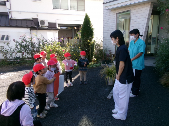 今週11月23日は勤労感謝の日ということで、いつもみんなのためにお仕事してくださっているみなさんに感謝を伝えに、各クラスのお友達が感謝めぐりに行ってきました。
