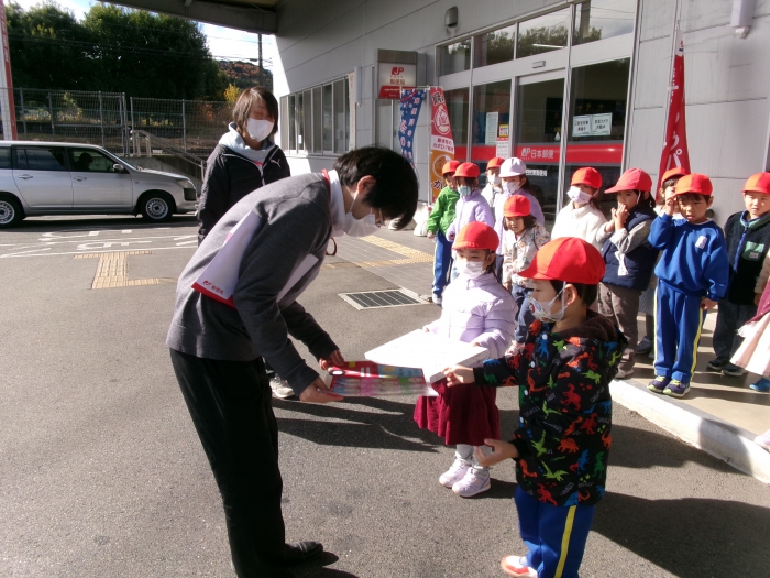 いつも大切なお手紙や荷物を届けてくださっているみなさんに、感謝の気持ちを込めて作ったプレゼントをお渡ししました。