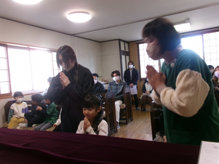 教会でお家の方と一緒に、園長先生からの祝福を受けました。