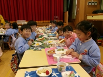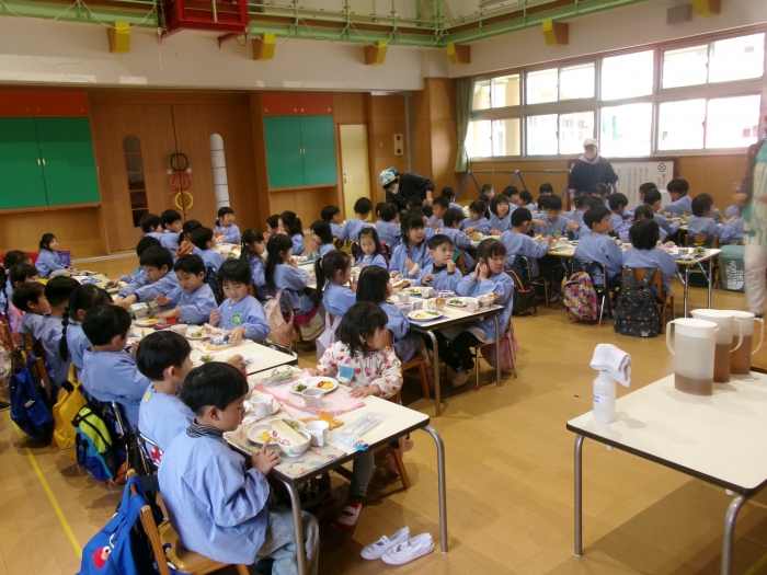 シールラリーを終えた後は、みんなが楽しみにしていた給食です。
