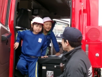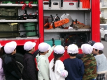 最後に消防署の方のご厚意で、消防車を見学させていただきました。