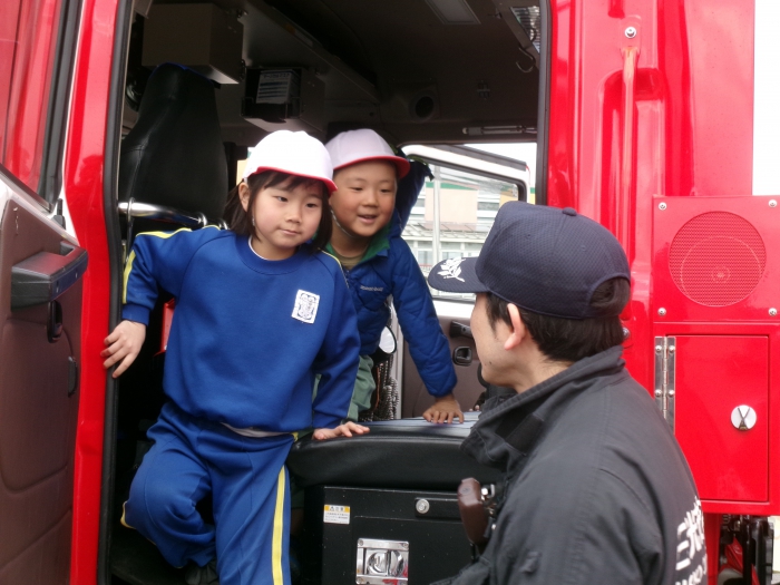消防車の中にも入らせていただき、子どもたちも嬉しかったようです。