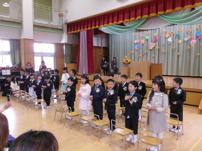 子どもたちも晴れ晴れとした表情で、中にはさみしさを感じ涙を流すお友達もいましたが、立派に出席することができました。