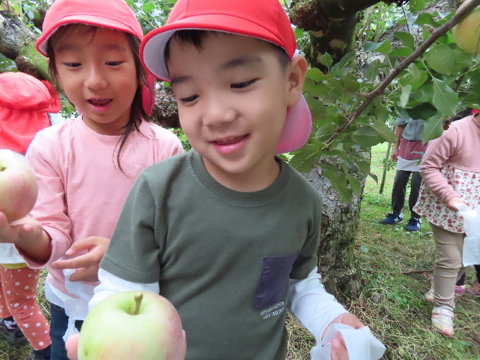 あたり一面のたくさんのりんごに、子ども達のテンションも大盛り上がり!!