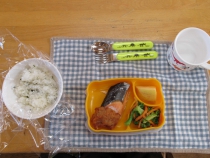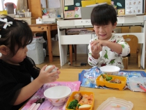 自分でにぎるおにぎりがお祝いランチの誕生会です。