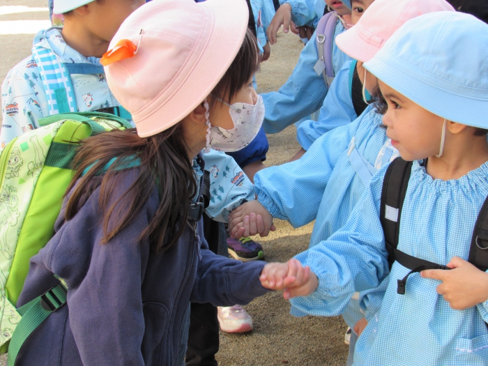 ほし組さんはさくら・すみれ組のお兄さん、お姉さんとペアになって。