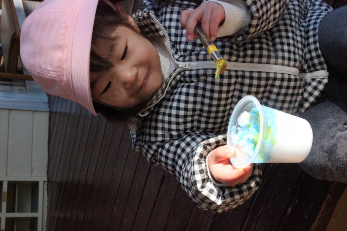 雪合戦やミニ雪だるま作り、色水を付けておいしいソーダも作りました。