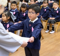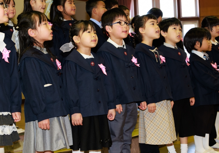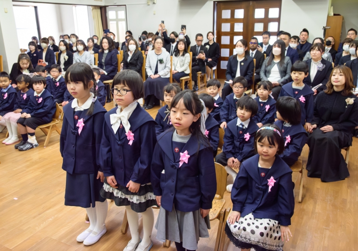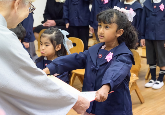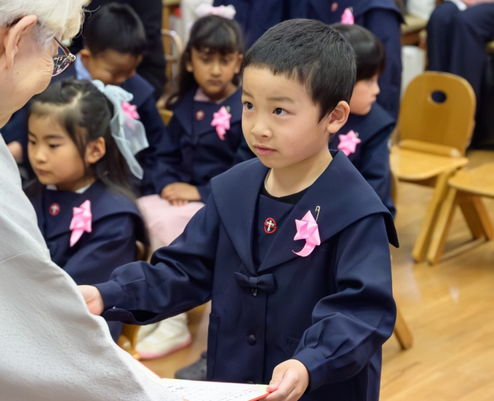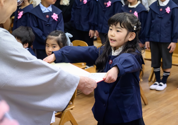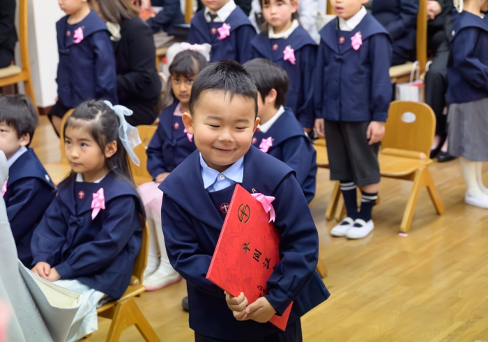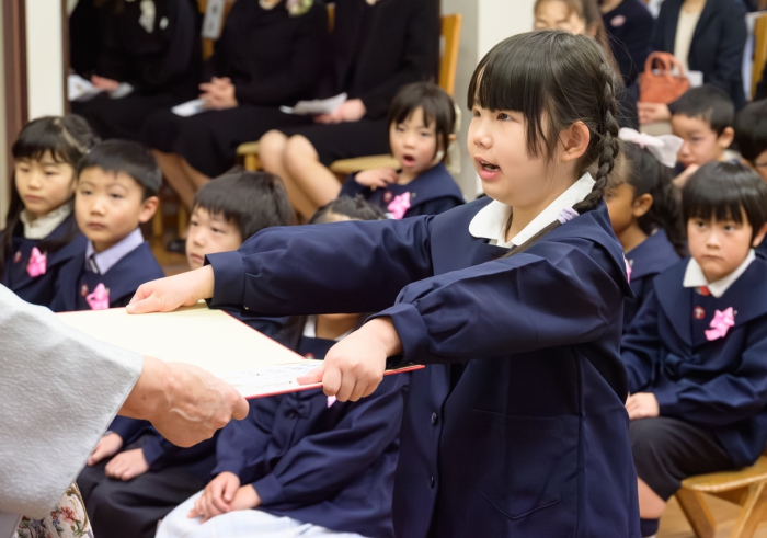 澄みきった青空のもと、卒園式を迎えた年長ぐみ。